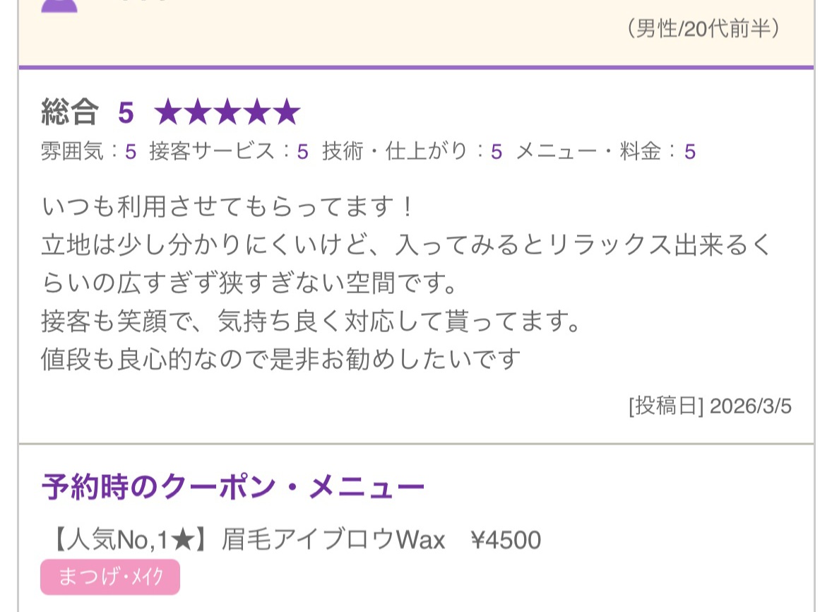 お客様から頂いた口コミのご紹介します🫶
