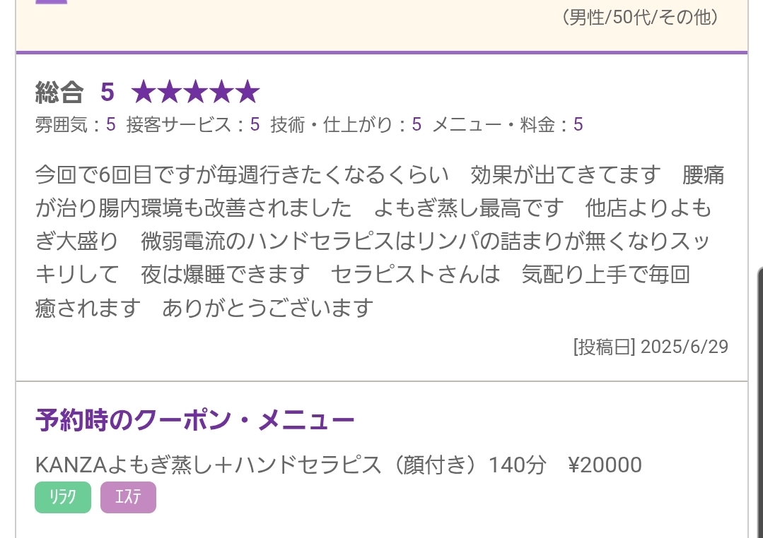 KAMZA蒸し&ハンドセラピスの口コミ↓↓